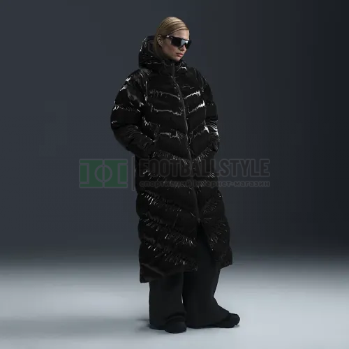 Куртка женская Nike WINDPUFFER THERMA-FIT LOOSE HOODED SHINE PARKA черная FV7827-010