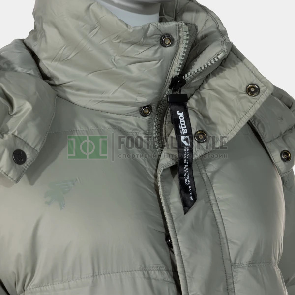 Женская стеганая куртка длиной 3/4. Разработана, чтобы выдерживать низкие температуры и поддерживать постоянную температуру тела спортсмена, например, во время пребывания в горах. Несмотря на свой большой объем, она весит очень мало и сохраняет тепло. Изготовление из нейлона позволяет ей быстро высыхать после небольшого дождя. Она включает в себя полноценную молнию с язычком. Кроме того, вдоль молнии есть планка, которая делает куртку еще более водонепроницаемой и предотвращает попадание холода внутрь. Застегивается на невидимые кнопки. Имеет еще один небольшой внутренний карман. Капюшон плотно прилегает к голове и имеет кнопки в области шеи для полной защиты. Спереди два кармана с флисовой подкладкой внутри и застежками-кнопками. Эта ткань позволяет спортсмену сохранять руки в тепле, когда он кладет их в карманы. Также прилегает к манжетам из ребристой ткани для большей адаптируемости. Напечатанный на 3D-принтере логотип Joma на груди и тканая этикетка на рукаве.