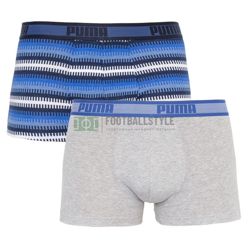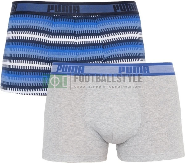 Трусы-боксеры Puma Worldhood Stripe Trunk 2P Синий, Белый, Серый, Черный Мужской L