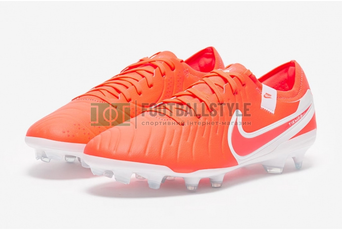 Пусть игра покажется легкой в футбольных бутсах Nike Tiempo Legend X Pro FG DV4333-800 в цвете Hot Lava/White с литым верхом для легкого касания мяча.
