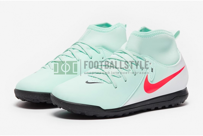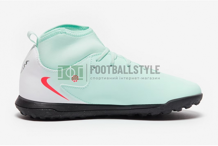 Создавайте яркое зрелище в футбольных бутсах Nike Phantom Luna II Club TF Junior FJ2607-300 в цвете Mint/Atomic Red/Off Noir.