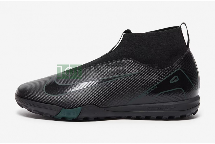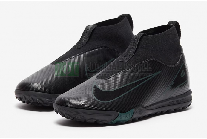 Станьте неуязвимым на поле с футбольными кроссовками Nike Air Zoom Mercurial Superfly X Academy TF Junior FQ8310-002 в цвете Black/Black/Deep Jungle.