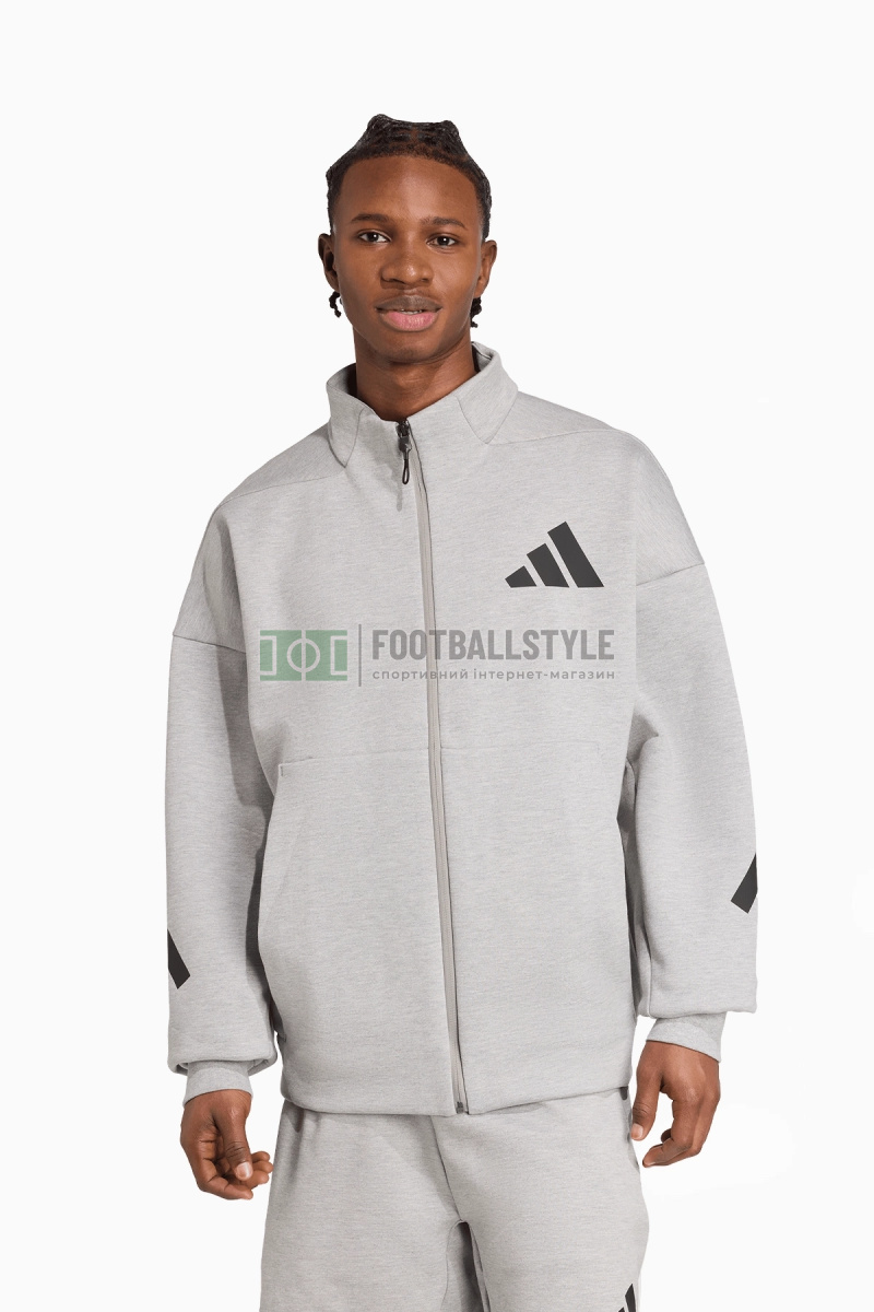 Кофта adidas Z.N.E. Full-Zip - серый артикул Adidas JX0638 (в наличии, оригинал, доставка, низкая цена).