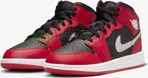 Кроссовки подростковые Nike AIR JORDAN 1 MID (GS) красно-черные DQ8423-061