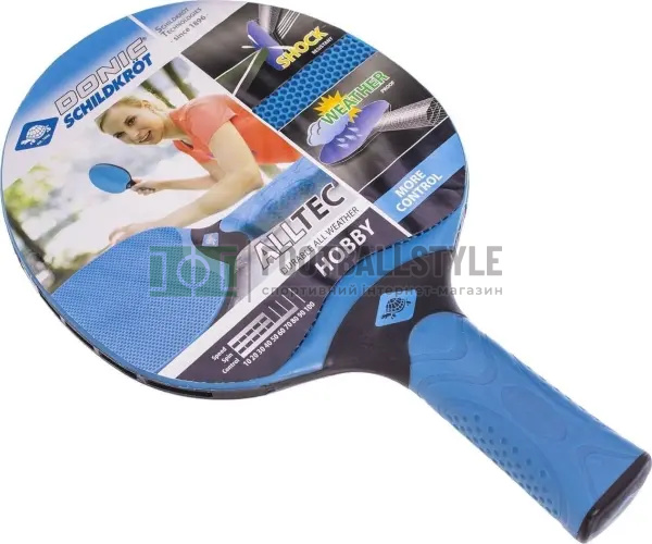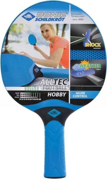 Ракетка для настольного тенниса Donic Alltec Hobby - это новая надежная модель из композитных материалов. Основа Alltec Hobby изготовлена из высокотехнологичного пластика, а накладки - из структурированной резины. Этой ракетке не страшны пыль и влага - идеально подходит для игры на улице. Ракетка имеет эргономичную ручку, препятствующую скольжению. Чрезвычайно ударопрочная. Серия: Alltec Hobby. Скорость: 60. Вращение: 60. Контроль: 90.