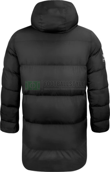 Длинная куртка с мягкой подкладкой и капюшоном. Боковые карманы на молнии.