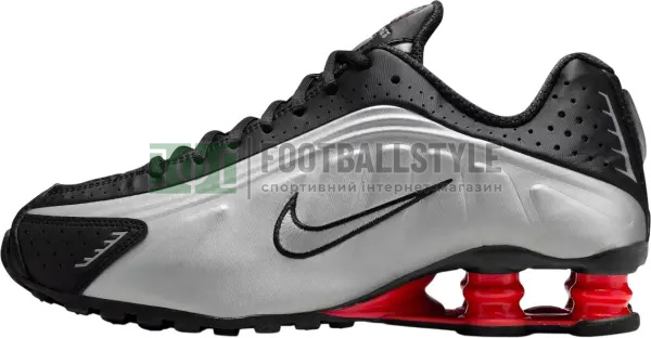Nike Shox R4, обновлённая версия культовой модели 2001 года, воспроизводит оригинальную модель с верхом из синтетического материала и текстиля, линиями дизайна и лазерной перфорацией. Амортизация Nike Shox распределяет вес, обеспечивая максимальный комфорт и создавая образ, вдохновлённый спортивной функциональностью. Изначально разработанные для поддержки стопы бегуна, амортизирующие "колонки" Nike Shox обеспечивают отзывчивую амортизацию. Верх практически полностью повторяет оригинальную модель Nike Shox 2001 года. Модифицированная круговая вафельная подошва обеспечивает сцепление. Лазерная перфорация улучшает вентиляцию от носка до носка.