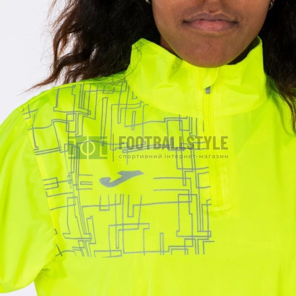 Спортивная кофта с воротником, застегивающимся на молнию. Манжеты на резинке, что обеспечивает удобную посадку. Дизайн принта на верхней части и логотип являются светоотражающими, чтобы улучшить видимость спортсмена в местах с плохим освещением. Материал имеет водоотталкивающее покрытие.