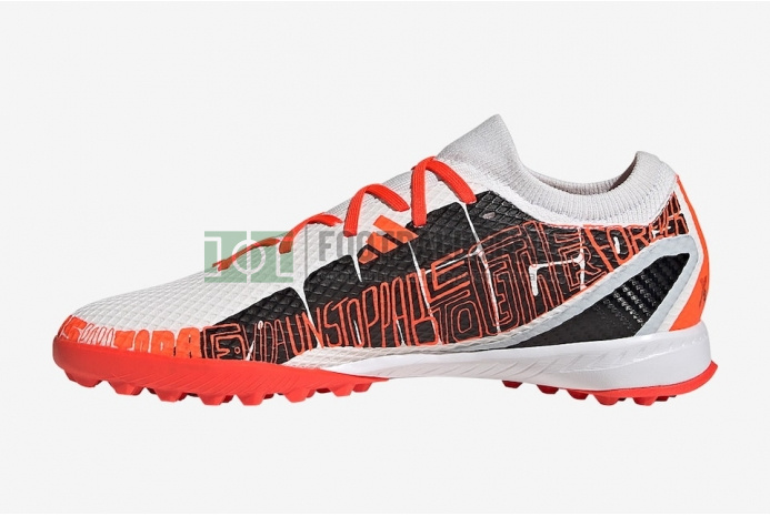 Чтобы вести мяч как Лео, нужно любить мяч. Всегда держать его близко. Это ключ к запутанным забегам Месси, и именно так вы разблокируете защиту в футбольных сороконожках Adidas X Speedportal Messi.3 TF GW8395 «Balon Te Adoro» в белом/черном/солнечно-красном цвете, фирменная расцветка с графикой, прославляющей его отношения с мячом.