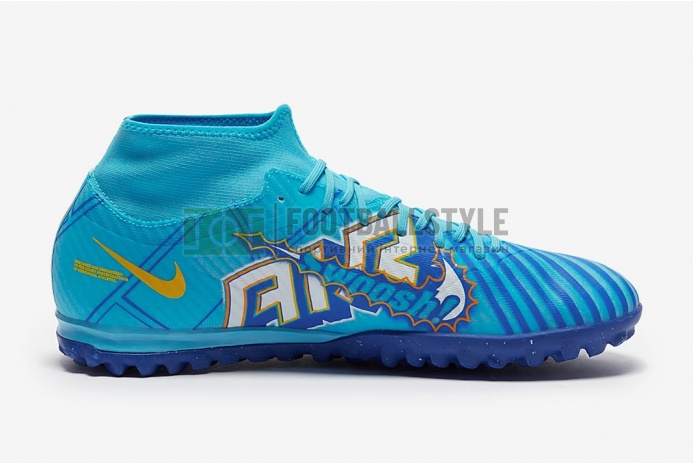 Выразите свою любовь к игре с футбольными сороконожками Nike Air Zoom Mercurial Superfly 9 Academy x Mbappe TF DO9347-400 — фирменной версии Mercurial, вдохновленной веселым стилем игры Кайлиана.