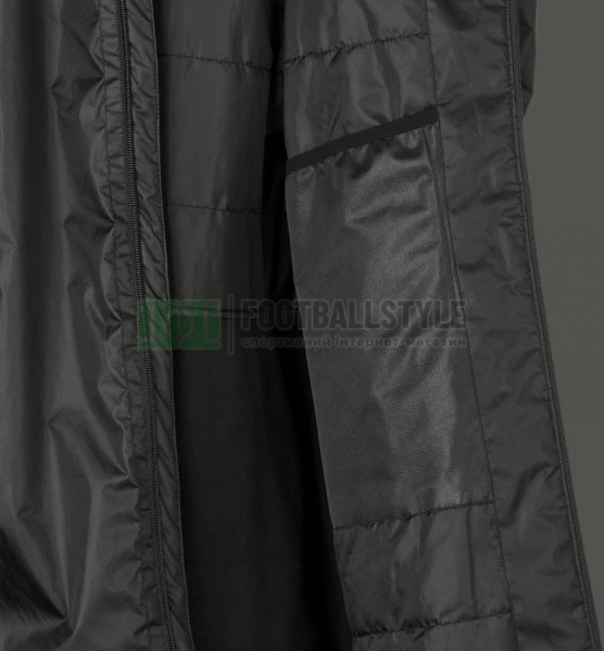Довга спортивна куртка на двосторонній блискавці. Зовнішній матеріал виготовлений із водонепроникного 100% переробленого поліестеру. Матеріал куртки витримує тиск водяного стовпа 9000 мм. Куртка має проклеєні шви, бічні кишені на блискавках, флісову підкладку в кишенях та на спині. Рекомендації: одяг для тренувань у зимовий період. Країна-виробник: Китай