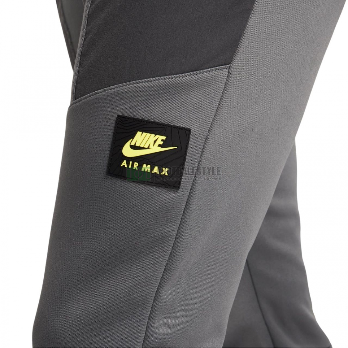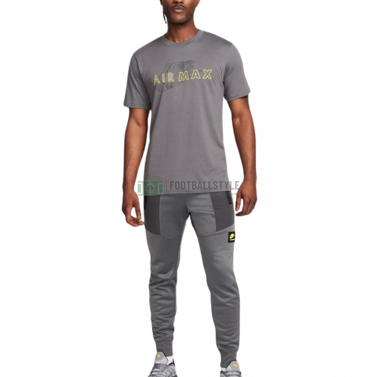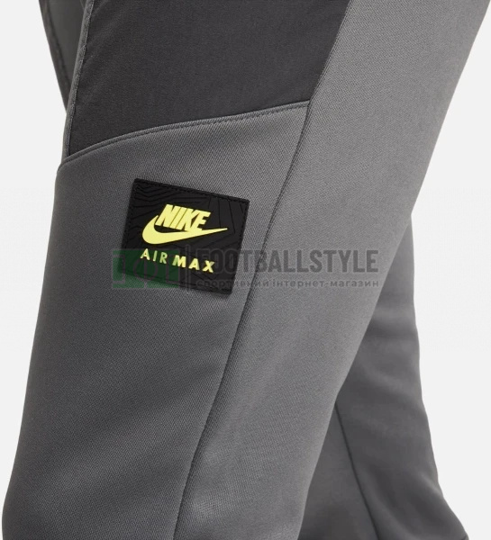 Класичні спортивні штани Air Max Track Pants від Nike стануть чудовим доповненням до гардеробу будь-якого чоловіка. Штани сірого кольору виготовлені із двошарового міцного поліестеру, що забезпечує тривалий комфорт. Модель також має еластичні нейлонові накладки. Штани виконані за технологією Dri-FIT, мають еластичні шнурки, кишені на блискавці і еластичний пояс з шнурком для щільної посадки. Весь одяг прикрашений фірмовим логотипом Air Max.