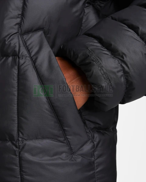 Залишайтеся в теплі в найхолодніші дні, загорнувшись у цей об'ємний пуховик. Технологія Nike Therma-FIT допомагає керувати природним теплом вашого тіла, щоб зігріти вас у холодну погоду. Перебільшені деталі (наприклад, дуже широкий штормовий клапан та каптур збільшеного розміру) надають цій зимовій моделі оновленого вигляду, а наповнювач PrimaLoft® Thermoplume® допомагає зберегти затишок. А коли руки замерзнуть, просто засуньте їх у кишені. Пропонуючи альтернативу пуху без шкоди для дизайну та тепла, утеплювач PrimaLoft® Thermoplume® складається із суміші водовідштовхувальних волокон, які забезпечують теплоізоляцію, стисливість та захист від вологої погоди. Він поєднується із технологією Nike Therma-FIT, яка допомагає керувати природним теплом вашого тіла, щоб зігріти вас у холодну погоду. Банджі-шнури на подолі та каптурі, а також застібка-блискавка на всю довжину допомагають не пропустити холод. Кишені на блискавці забезпечують безпечне зберігання телефону, ключів та інших дрібниць. Swoosh логотип з аплікацією в центрі спини. Вишитий логотип Swoosh на капюшоні.