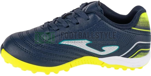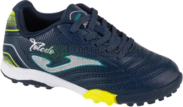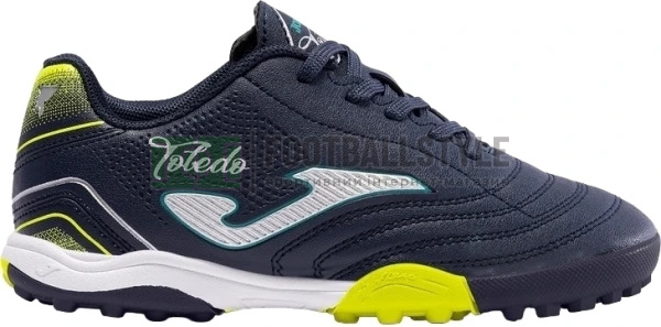 Бутси футбольні для хлопчиків та дівчаток, для гри на газоні (синтетичних поверхонь). З цими багатоцільовими кросівками діти зможуть грати та тренуватись на будь-якій місцевості. Конструкція виконана з високоякісної синтетичної шкіри, що забезпечує стійкість та гарний контакт з м'ячем. Створені, щоб домінувати у грі та демонструвати всі свої якості на критих кортах. Підошва виготовлена із цільної міцної гуми. Висока якість, хороша стійкість до стирання та зчеплення з поверхнею. Зі структурою з кількома шипами, що зменшує тиск на протектор і забезпечує хорошу підтримку. Гнучкість забезпечується лініями FLEXO. Безпечне обертання з геометричними структурами ROTATION. Персоналізований дизайн із тисненням TOLEDO.