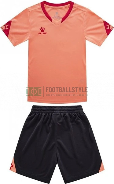 В комплект входить футболка і шорти. Футболка має V-подібний комір, який має приємний зовнішній вигляд і приємний на дотик, тобто не натирає і не подразнює шкіру спортсмена. Комплект складається з 100% поліестеру, що сприяє великим рівнем міцності і стійкості до впливів навколишнього середовища. Еластичний пояс на шортах зрадить додатковий комфорт, так як, він має регулювальні шнурки, для регулювання оптимальної посадки. Варто відзначити стильний, двухцветовой дизайн комплекту з логотипами KELME на рукавах, передній частині футболки і шортах.