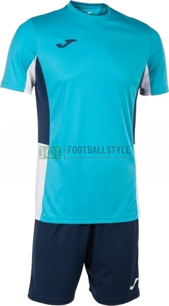Комплект складається з футболки з коротким рукавом та шорт, призначений для тренувань з футболу та футзалу у спекотні дні. Це легкий і дихаючий комплект, щоб тіло футболіста залишалося прохолодним та сухим під час матчу. Свобода рухів та відведення поту в одному комплекті. Футболка з короткими рукавами характеризується еластичною круглою горловиною, що дозволяє вільно рухатися. В ділянці боків і під пахвами представлена дихаюча тканина, що відводить піт. Таким чином, він не турбуватиме вас на заняттях спортом, залишаючи шкіру сухою та свіжою та уникаючи охолодження після тренування. Шорти мають регульовану еластичну талію, що адаптується до фізичної форми футболіста. Запобігає ковзанню одягу та забезпечує подвійне регулювання завдяки внутрішнім плоским шнуркам. Легка тканина, з якої вони виготовлені, не дасть вам перегрітися в спекотні дні і відводитиме піт, зберігаючи вашу шкіру прохолодною і сухою. У той же час тканина стійка до стирання та прання, тому вам не доведеться хвилюватися, якщо ви впадете або забруднитеся. У дизайні цієї футбольної форми виділяються контрастні кольорові деталі з боків та під пахвами, які стилізують одяг та надають йому сучасного відтінку. Шорти тон доповнюють новаторський комплект. Логотип Joma надруковано на обох предметах одягу. Тип крою приталений.