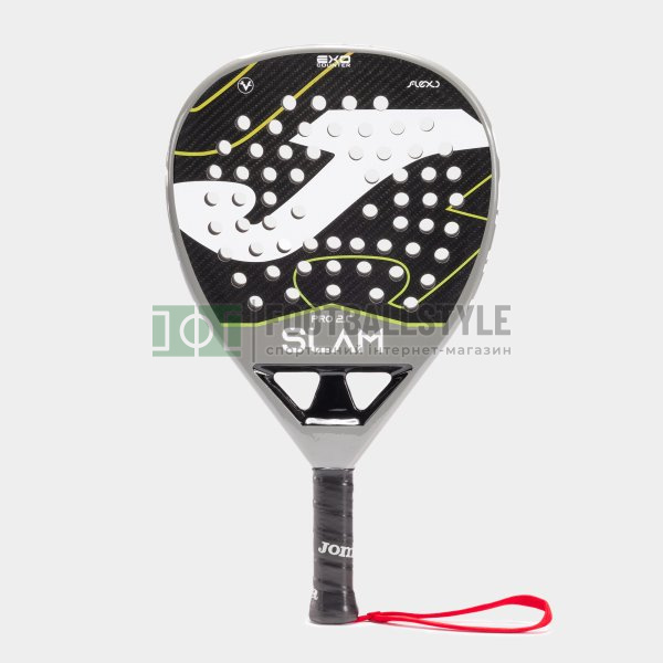 Ракетка Slam Pro Paddle, виконана у формі ромба, вирізняється винятковим поєднанням потужності та контролю, що робить її універсальною ракеткою. Її універсальність ідеально підходить для досвідчених гравців, які прагнуть визначати ключові моменти і отримувати максимальну користь з будь-якої ігрової ситуації, чи то потужна атака, чи то стратегічний захист. Сердечник FLEXO BlackEVA високої щільності в поєднанні з волокнами FlexSHIELD 3K забезпечує чудову продуктивність при кожному ударі. Така конструкція забезпечує впевнене і точне відчуття м'яча, гарантуючи винятковий контроль і миттєвий відгук. Оправа, виготовлена зі 100% карбону EXO COUNTER, забезпечує міцність і жорсткість конструкції, даючи змогу ракетці витримувати найінтенсивніші та найтриваліші ігри. Крім того, Slam Pro оснащена вдосконаленою системою VIBRA-OUT Slam, яка знижує вібрації, що виникають під час удару, до 40%, підвищуючи комфорт і знижуючи ризик втоми рук або травм. Ця ракетка, розроблена для гравців, які прагнуть до найвищого рівня, стане ідеальним союзником для тих, хто прагне домінувати на корті стильно й ефективно. Вага: 355-360 г. Форма: ромбоподібна. Бічна частина: карбон 3K. Рамка: карбон.