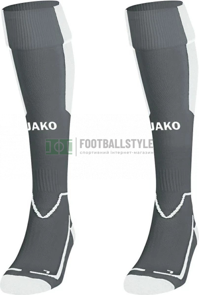 Особливості: дуже широка ребриста манжета з посиленням, ребриста структура на кісточці, м'яка п'ята та носок, основа з функціонального поліестеру, сітчасті точки JAKO на ликах.