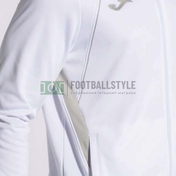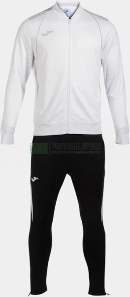 Спортивний костюм складається зі спортивної кофти на блискавці та довгих штанів. Цей спортивний костюм можна використовувати як до, так і після тренування у футболі чи футзалі, а також для будь-яких інших тренувань. Його також дуже зручно носити щодня. Зігрійтеся з ним у холодні дні завдяки теплій внутрішній тканині, поки ви вільно рухаєтеся. Спортивна кофта застібається на блискавку та має бічні кишені для зберігання необхідних речей. Вона виготовлена з гумкою на горловині, подолі та манжетах, що забезпечує ідеальну посадку та захист від холоду. Представляє дизайн, що характеризується контрастними кольоровими вирізами в ділянці плечей, верхньої передньої та бічної обробки. Штани мають еластичну талію, яка регулюється за допомогою шнурків, і кишені на блискавках з боків. У такий спосіб футболіст зможе комфортно зберігати та транспортувати свої особисті речі, як-от мобільний телефон або ключі, не турбуючись про їхню втрату. Також є блискавки внизу, щоб одягати і знімати швидко і легко. Дизайн гладкий, з одноколірним контрастним вирізом з боків. Спортивний костюм виготовлено з м'якої зручної тканини, стійкої до стирання та прання. Обидва предмети одягу мають внутрішню флісову тканину, теплий матеріал, що допомагає підтримувати температуру тіла спортсмена. Усе це гарантує повну свободу пересування. Логотип Joma вишитий на обох предметах одягу.
