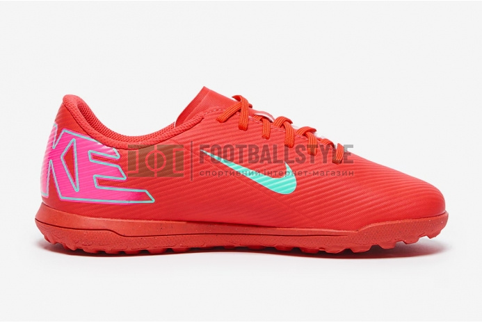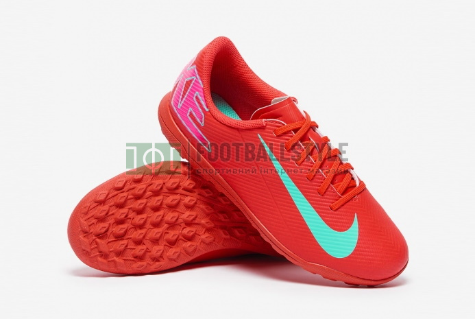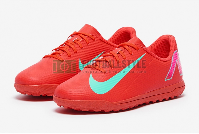 Станьте недоторканними на полі з футбольним взуттям Nike Mercurial Vapor 16 Club TF Junior FQ8687-800 кольору Ember Glow/Aurora Green.