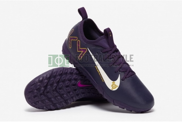 Свято швидкості для значка Mercurial. Станьте недоторканними, як Кіліан, із футбольними сороконіжками Nike Air Zoom Mercurial Vapor 16 Academy x Mbappe TF Junior FQ8285-500 кольору Grand Purple/Pale Ivory.