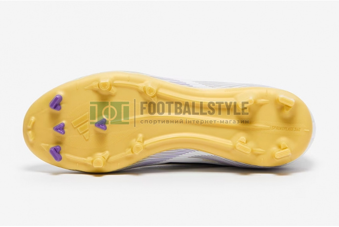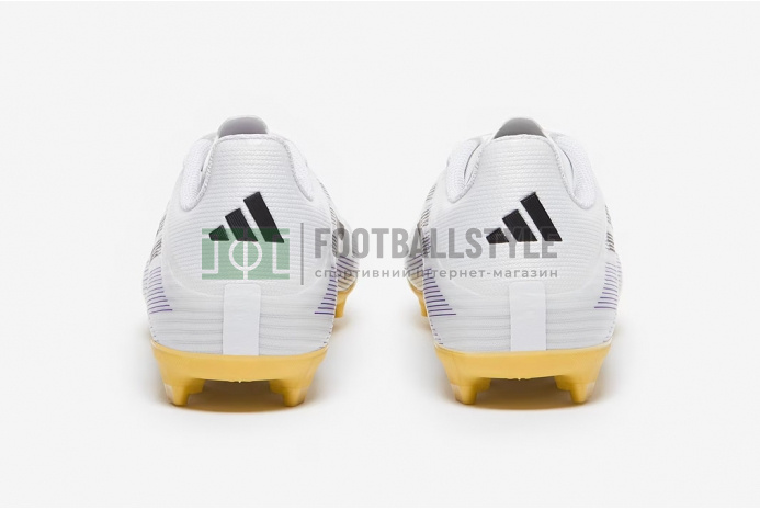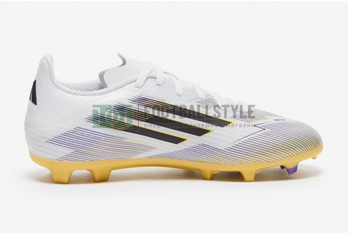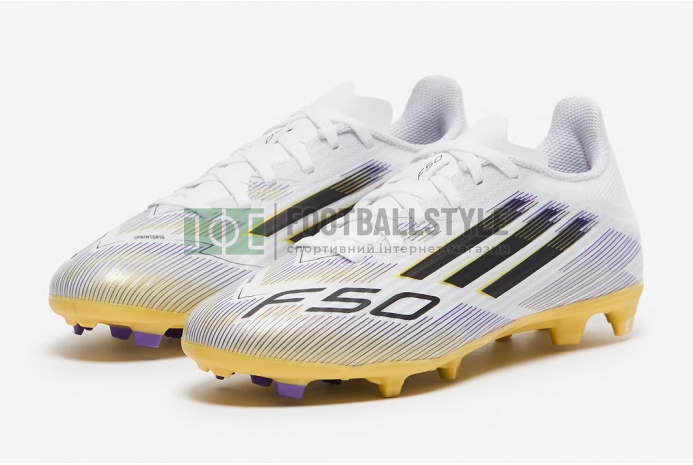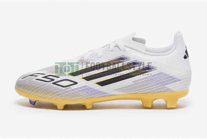 Переосмисліть швидкість у футбольних бутсах Adidas F50 League MG Junior JH7745 кольору White/Core Black/Met Gold.