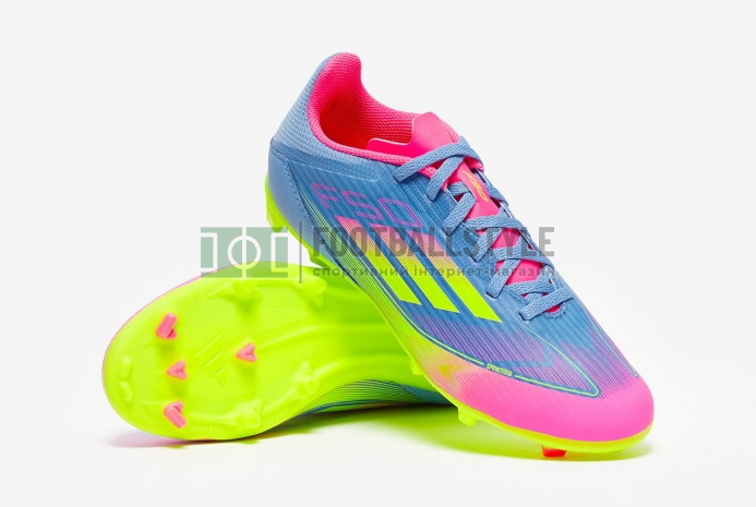 Переосмисліть швидкість у футбольних бутсах Adidas F50 League MG Junior IE3746 кольорів Blue Fusion/Lucid Lemon/Lucid Pink. Вони повернулись, і це швидше, ніж будь-коли.