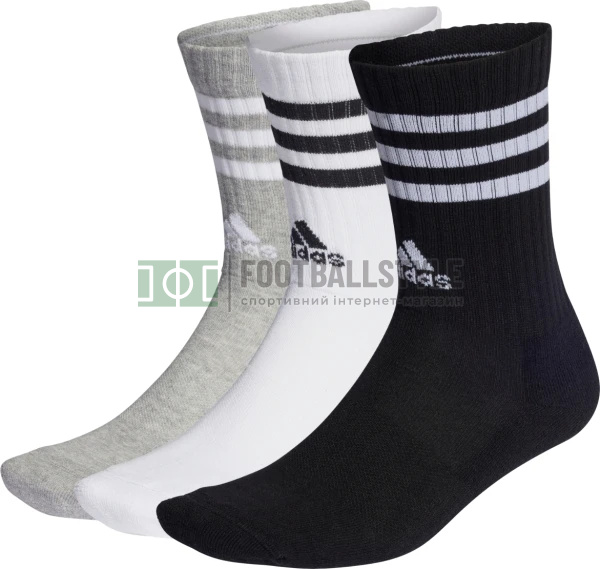 Шкарпетки Adidas 3-STRIPES CUSHIONED CREW 3P білі, сірі, чорні (3 пари) IC1323