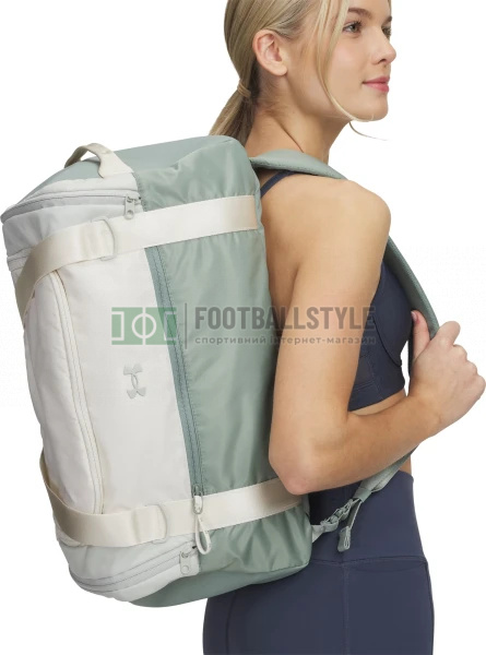 Сумка спортивна жіноча Under Armour STUDIO DUFFLE BP 33L зелено-бежева 1388929-348