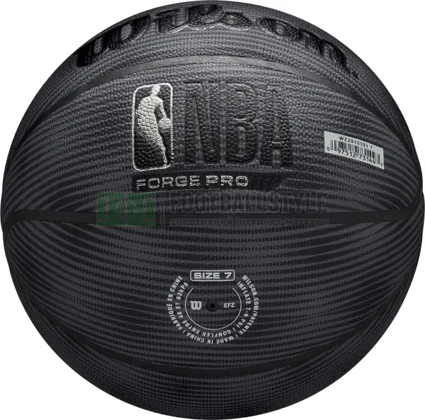 Баскетбольний м'яч Wilson NBA Forge Pro Midnight для гри в приміщенні та на вулиці. Перероблений канал за технологією Dual Depth створює більше заглиблення, покращуючи зчеплення і посилюючи відчуття від гри. Покриття Pure Feel MicroFiber Partly Recycled з поліпшеною м'якістю матеріалу і підкладка з переробленого ПЕТ забезпечують краще зчеплення, поліпшені відчуття і контроль м'яча. Ever Bounce поєднує в собі внутрішню губчасту конструкцію, високоефективні обмотки та балансувальний патч для стабільного відскоку щоразу. Спеціальна підкладка забезпечує більш тривале утримання повітря. Wilson є офіційним постачальником м'ячів для НБА. Цей м'яч має офіційний логотип НБА в поєднанні з культовим логотипом Wilson.
