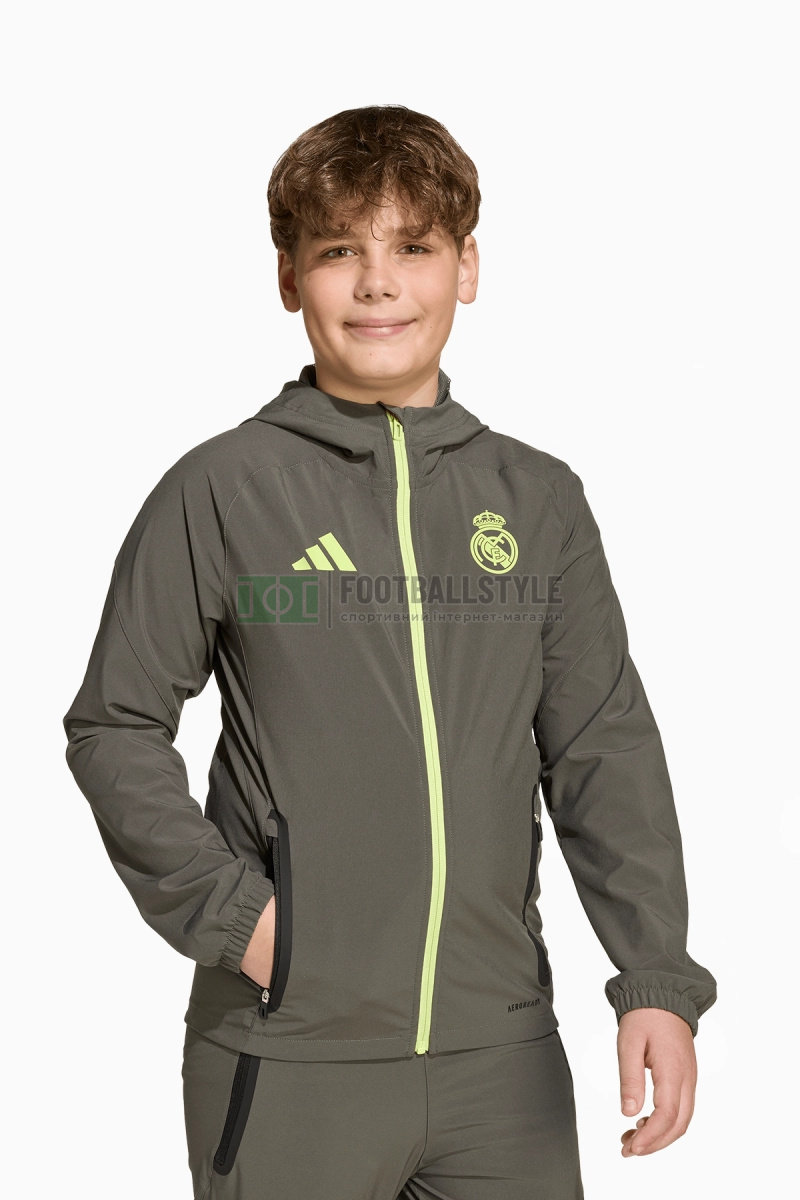 Вітровка adidas Real Madrid 25/26 Competition Vis Tech Travel Junior - зелений артикул Adidas JV5326 (у наявності, оригінал, доставка, низька ціна).