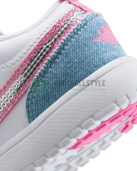 Ці кросівки Jordan спеціальної серії вражають своїм блиском. Поєднання м'якої шкіри та міцного деніму з яскравими рожевими акцентами та паєтками у вигляді логотипу Swoosh створює веселий образ, який ваші діти можуть носити щодня. Шнурівка, що відкривається як книжка, дає змогу дітям швидко та легко одягати кросівки. Ремінець із липучкою дає змогу дітям відкривати "шнурівку", як книжку, що полегшує надягання і застібання кросівок. Натуральна і синтетична шкіра в поєднанні з денімом забезпечують міцність і підтримку. Пінна проміжна підошва забезпечує легкість і амортизацію. Гумова підошва забезпечує дітям надійне зчеплення. Еластична шнурівка. Язичок на п'яті.