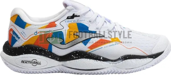 Високоякісні, з максимальною продуктивністю і передовими технологіями, які допомогли таким професійним гравцям, як Толіто, домогтися успіху. Вони забезпечують максимальну амортизацію, реактивність і захист, вимагаючи відточеної техніки. Проміжна підошва має подвійну щільність: верхній шар Phylon забезпечує виняткове повернення енергії, а нижній - Reactive Ball, що забезпечує чудову амортизацію. Така конструкція не тільки забезпечує стійкість під час бічних рухів, що вкрай важливо, а й оптимізує вибухові старти та швидкі зупинки під час зміни напрямку руху на корті. Легкий верх із технологічної сітки. Оптимізована повітропроникність завдяки технології вентиляції VTS. Термозварювальна система JOMA SPORTECH забезпечує комфортну посадку по стопі. Гумові вставки в зонах, найбільш чутливих до тертя й ударів. Ці елементи утворюють систему PROTECTION. Технологія Stabilis, розташована в супінаторі, є напівтвердим елементом з термопластичного матеріалу, призначеним для підвищення стійкості взуття, зниження ризику скручування і запобігання травмам. Спеціальна підошва з шипами, виготовлена з матеріалу Durability, забезпечує виняткове зчеплення. Цей міцний матеріал не тільки забезпечує чудову зносостійкість, а й шипований малюнок протектора дає змогу впевнено і швидко переміщатися та змінювати напрямок. Крім того, конструкція підошви забезпечує контрольоване ковзання, що ідеально підходить для гри на будь-яких поверхнях.