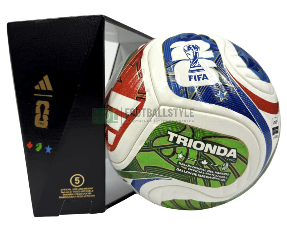 Оригінальний офіційний футбольний м'яч Чемпіонат Світу 2026 у подарунковій коробці adidas Trionda World Cup 2026 FIFA Quality PRO (термошов) артикул виробника Adidas JD8021 (в наявності, оригінал, доставка, низька ціна).