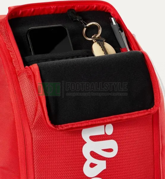 Насолоджуйтеся бездоганною якістю і функціональністю останньої колекції рюкзаків Wilson Super Tour, виконаної у величному червоному кольорі, найкультовішому кольорі бренду. Оновлений, зручніший і легший для перенесення, рюкзак Super Tour Red ідеально підходить як ручна поклажа завдяки оновленому дорожньому ременю, доповненому новим піноматеріалом і сіткою, вбудованими в задню панель і плечові ремені. Крім м'якого відділення для двох ракеток із застібками-блискавками, модель має кілька відділень, включно з м'якою кишенею для ноутбука і роздільниками для аксесуарів для зручної організації. Додаткові функції включають відділення для взуття на блискавці для зберігання брудних речей і бічне відділення з підкладкою Thermoguard для напоїв або їжі. Внутрішнє відділення для зберігання вміщує додаткову пару взуття під час подорожі. Кишеня для аксесуарів на флісовій підкладці забезпечує додатковий захист невеликих цінних речей. Часткове відділення для ракетки оснащене блискавками, що замикаються, які надійно фіксують голову ракетки. Відділення для аксесуарів із термозахистом Thermoguard захищає закуски та невеликі особисті речі від екстремальних температур. Розміри: 51 х 32 x 30 см.