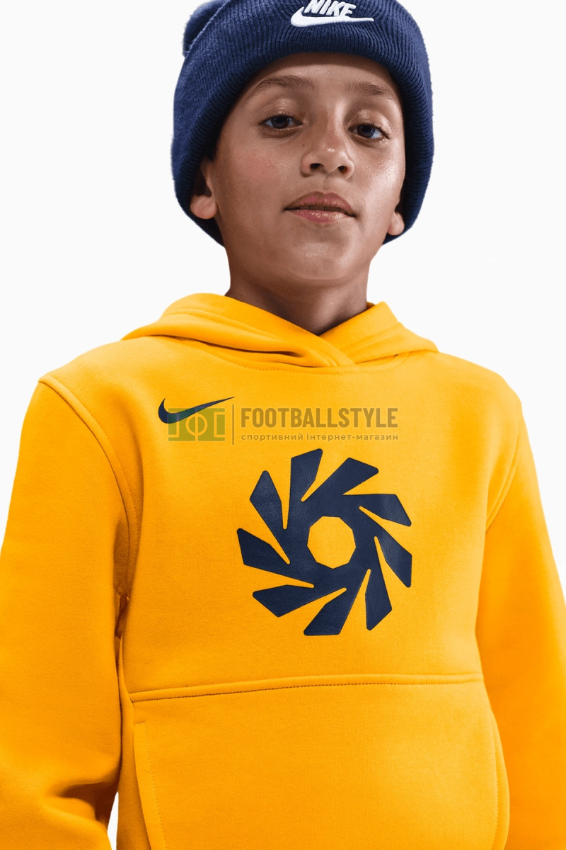Кофта Nike Erling Haaland Club Fleece Junior - жовтий артикул Nike HV0221-739 (у наявності, оригінал, доставка, низька ціна).