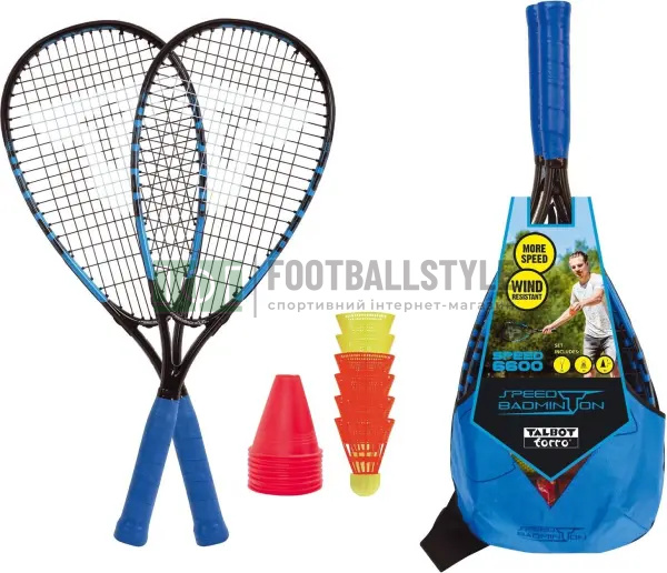 Набір для швидкісного бадмінтону Talbot SPEED BADMINTON SET SPEED 6600 (2 ракетки, 6 воланів, 8 конусів, чохол) чорно-синій 490116