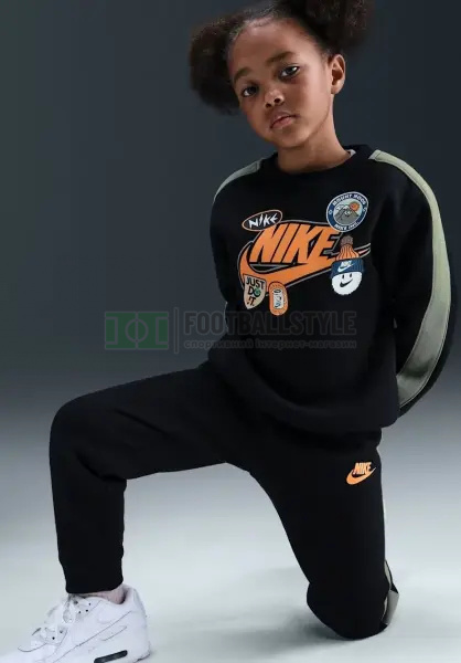 Цей комплект із двох предметів, зшитий із м'якого флісу, стане фаворитом вашої дитини. Верхня частина досить вільна, щоб надіти її поверх футболки або майки, відповідні до неї штани з еластичним поясом забезпечують зручну посадку, а завужені штанини вигідно підкреслюють кросівки Nike.