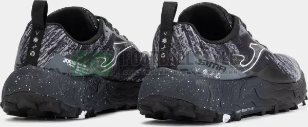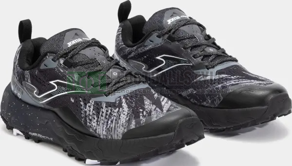 Кросівки для бігу по пересіченій місцевості. Легендарна модель для бігу по пересіченій місцевості продовжує пропонувати високий комфорт і амортизацію ударів завдяки використанню передових технологій. Легкий верх виготовлений із сітки з жакардовим покриттям, до якого застосовано систему перфорації VTS для ще кращої повітропроникності. Безшовна термогерметична система JOMA SPORTECH забезпечує комфортне прилягання до стопи. Термогерметичне посилення PROTECTION на шкарпетці та з боків гарантує довговічність і запобігає проникненню зовнішніх елементів під час бігу. Проміжна підошва з перепадом висот 7 мм, виготовлена з цільного шматка піни FOAM REACTIVE. Розроблена для забезпечення виняткової продуктивності на кожному кроці. Цей інноваційний матеріал забезпечує відмінну віддачу енергії, адаптуючись до тиску та удару. Він підлаштовується під потреби бігуна та забезпечує плавний перехід між кожною фазою удару стопи. Гумова підошва DURABILITY. Має протектор товщиною 4,2 мм, спеціально розроблений для забезпечення виняткового зчеплення з усіма типами місцевості.