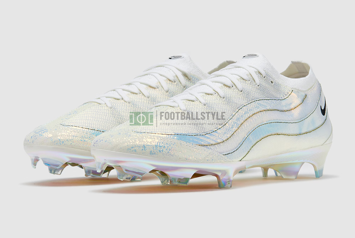 Швидкість зустрічається зі стилем у спалаху кольору. Відсвяткуйте 30-ту річницю Air Max 95 з футбольними бутсами Nike Air Zoom Mercurial Vapor 16 Elite x AM95 SE FG HV9915-100 у біло-чорному кольорі. Колись футболісти-суперзірки приїжджали в AM95, а потім одягали Mercurial, щоб опанувати поле.