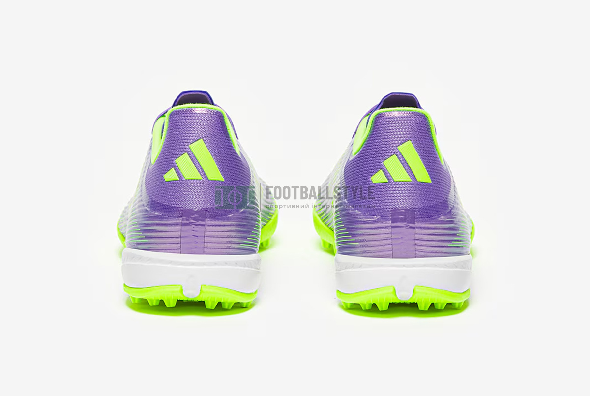 Переосмисліть швидкість у футбольному взутті Adidas F50 League TF JH7724 кольору Purple Rush/Ftwr White/Lucid Lemon.