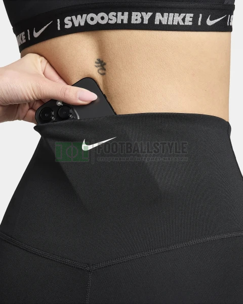 Створені для того, щоб підтримувати вас від одного завдання до іншого. Неймовірно зручна конструкція. Стрейчева тканина з технологією Dri-FIT відводить піт від шкіри для швидкого випаровування, допомагаючи вам залишатися в сухості та комфорті. До того ж тканина досить щільна, щоб не обмежувати рухи, тому ви можете бути впевнені в собі. Невагома тканина проходить тест Squat, щоб допомогти вам залишатися закритою. Бічні сторони не мають швів, а пояс має V-подібну форму на спині, щоб надати вам плавного силуету. У конструкції передбачені 2 приховані кишені на високому поясі, щоб ви були готові до всього, за що беретеся протягом дня. Кишеня ззаду досить велика, щоб вмістити телефон.